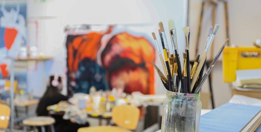 Labbet är konstskolans projektrum. Här arbetar elever i årskurs två med enskilda projekt som redovisas varannan vecka.