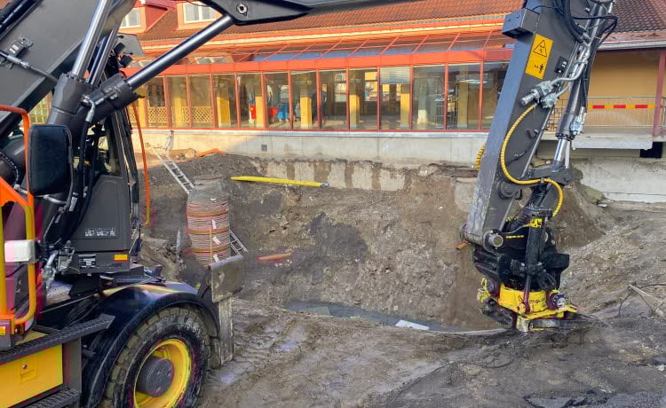 Grävningarna utanför hus 03 och 04 fortsätter och köket har nu också fått en ny fettavskiljare.