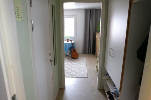 Tvårummare för två personer, 45 m² nyrenoverad 2023, nya möbler. Minimalt men fullt utrustat kök med barbord vid fönstret. Vardagsrum med parkettgolv, två soffor, sideboard/bokhyllor, matbord med fyra stolar samt fransk balkong. Sovrum med två 90 cm sängar och tre garderober. Egen toalett och dusch, två förråd. Ligger en trappa upp med egen ingång. Tvättstuga i porten bredvid.