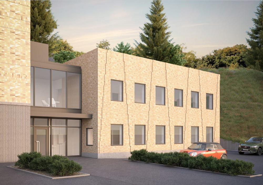 Den nya teknikbyggnaden byggs i slänten på Bergsgatan och kommer att stå för den tekniska försörjningen för hela sjukhusområdet. Den nya teknikbyggnaden kommer att förbättra sjukhusets robusthet och redundans i alla tekniska system och är en förutsättning för alla framtida byggnationer på sjukhusområdet. Den administrativa byggnaden ger ett lyft till arbetsmiljön för de medarbetare som arbetar med drift och förvaltning på området.