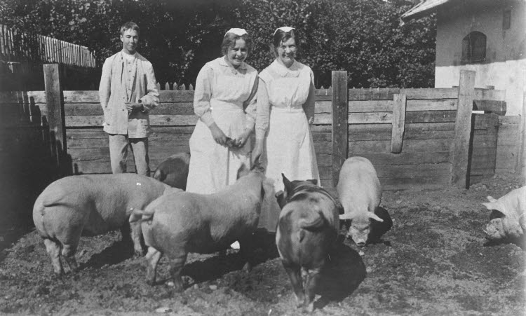 | Grishuset låg väster om sjukhuset och grisskötsel vid Hudiksvalls lasarett pågick från 1840-talet till 1927 då det började anses ohygieniskt med lasarettsgrisar på sjukhusområdet. (Källa: ”Historik om lasarettet år 1927”, Fernström, 1982). Grishuset revs på 1970-talet. (Källa: Sjukvård och sjukhus i Hudiksvall, Fernström, 1994). |
