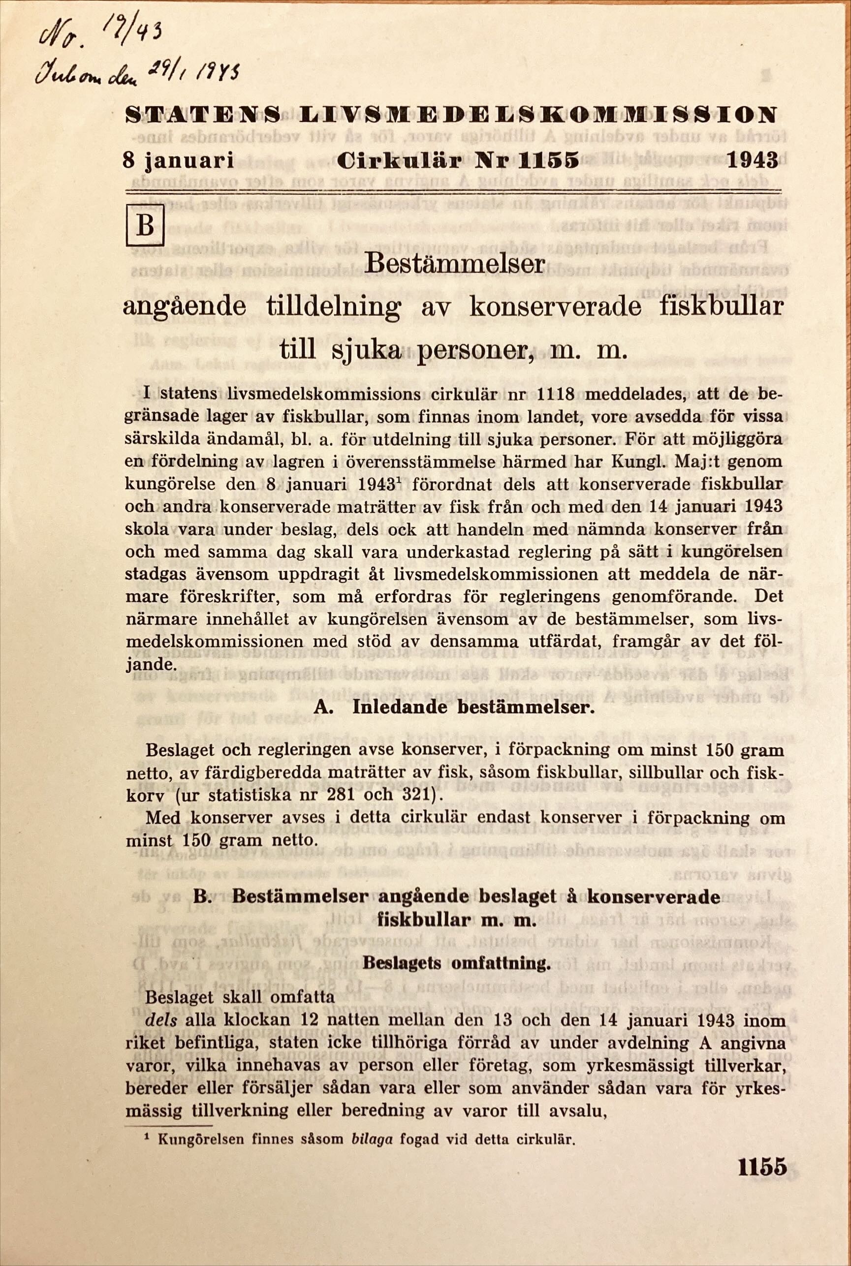 1943 var doktor Hugo Godell provinsialläkare i Kilafors distrikt. Även han var underställd de statliga direktiven och fick i slutet på januari detta år ta emot ett cirkulär från Statens livsmedelskommission. Här kunde han läsa att lagret av fiskbullar börjat sina och att man därför tvingats besluta att de fiskbullar som nu fanns enbart skulle utdelas till ”särskilda ändamål”, bland annat till sjuka.