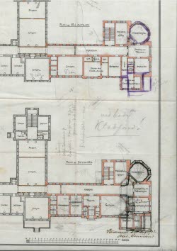 Ritningen visar en skiss av den planerade utbyggnaden av Gävle lasarett, gjord av Axel Kumlien år 1903. Redan år 1900 hade dåvarande lasarettsläkare Erik Lindström äskat om ökade resurser, framför allt för den kirurgiska avdelningen. De två arkitekterna Axel Kumlien och Gustav Wikman kom med liknande förslag om en utbyggnad mot öster, men lasarettsdirektionen valde till slut Kumliens förslag.