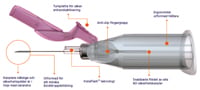 Blå lancett normalflöde Gul lancett högflöde |