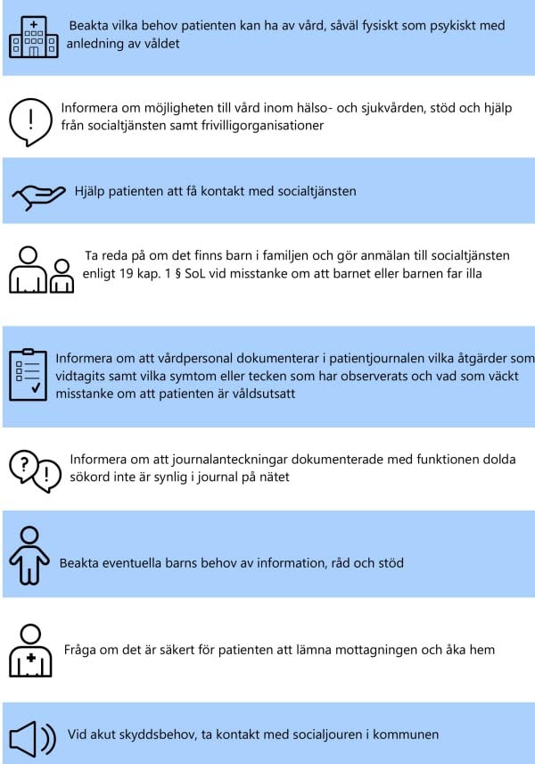 När patienten har berättat om våldsutsatthet är det viktigt att: