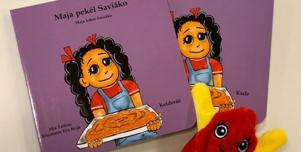 Språkpaketet på romani chib innehåller en bok, Maja bakar Saviáko (på kaale och kalderash), att läsa tillsammans med barnet, ett informationsblad om en kan hjälpa sitt barn att utveckla språket samt läskompisen Bella, som kan göra bokläsningen mer levande.