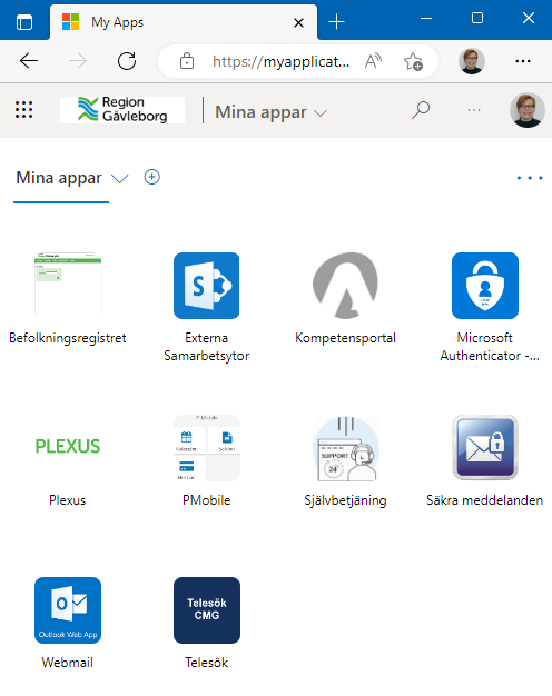 När du loggat in på https://myapps.lg.se kommer du in och ser de system som du har tillgång till. Klicka på det system du vill använda.